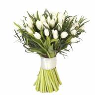 Главное послание букета заключается в самом названии. Это нежные белые тюльпаны, идеальный вариант для подарка близким и дорогим сердцу друзьям либо приятной девушке. Белые тюльпаны отлично подойдут для свадьбы, так как это торжество чистоты чувств. Оформление композиции выбрано подобающе: оно милое, ненавязчивое и в минималистичном стиле. Запах цветов оставляет приятный след в душе каждого.